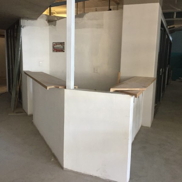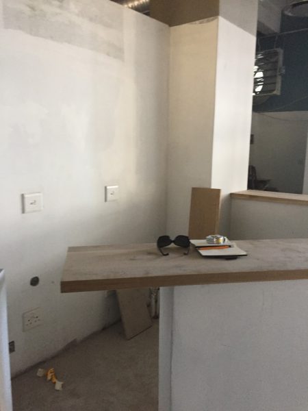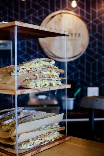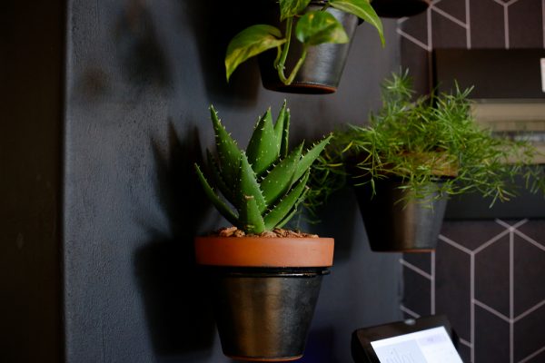 We kept it clean and simple – using black to ground and define the space, plants to soften it, and played with natural woods to bring through that cheeky cheeseboard element. We customized the back wallpaper with Ben Grib from Essie Letterpress for some uniqueness and trend, and added some hanging lights because, well, we all have a little hipster in us, right?